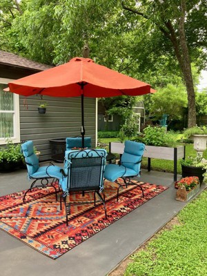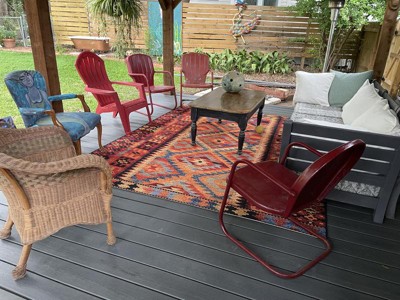 [This review was collected as part of a promotion.] I love this addition on my patio of this 5'3" x 8' outdoor rug. Colors are vibrant & the rugs tribal design adds a lot of personality to the seating area. Nice way to add some zip to your outdoor entertaining area!
