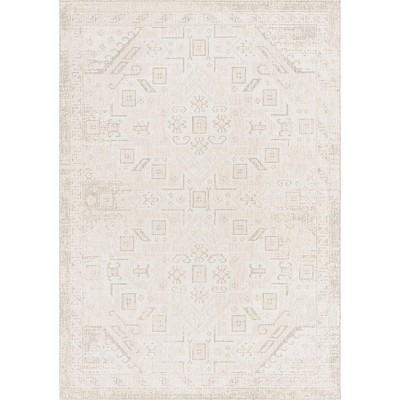 Create a temple right in your own backyard! Featuring sophisticated medallion patterns with a lightly distressed look, the Outdoor Aztec Collection is the perfect base for your outdoor living space. Available in a variety of neutral colors like brown and beige, with a few more exotic options like pink, blue and teal, these rugs are easy to fit in with any style of outdoor furniture or decor. The flat weave polypropylene construction is easy to clean and weather resistant, ready to be rolled out on your patio, deck, or even indoors where you need a tough rug that looks great.
