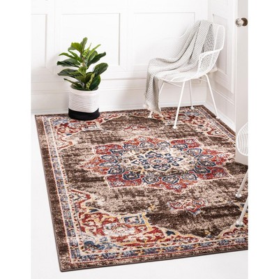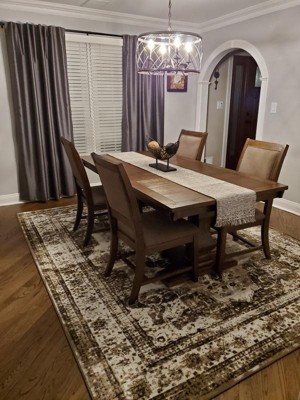 We bought the Monaco Rug in Brown in both the 8x10 and the 6x9 sizes for adjoining areas. These rugs are not as thick/heavy as those we were replacing so I’m not sure how long they’ll last. But for the amazing prices and free shipping, it’s worth trying them. The 8x10 was folded and then rolled for shipping which caused a tear in the rug backing. Since that rug was going under our pedestal table and that spot would never be walked on, we figured there was no need to return it. The rugs still look somewhat rippled from shipping after more than a week but overall we are very pleased with the look. And we have a completely updated look in our living room and dining room for a very small investment. I would recommend Rugs.com.