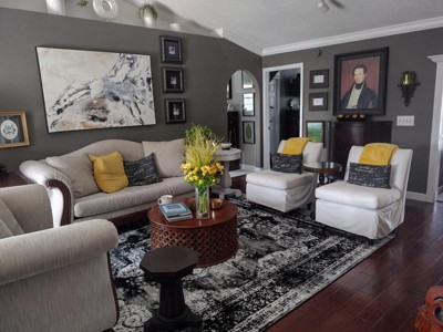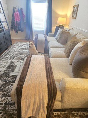 Love the rug ~ colors blend to go with our different shades of gray and black furniture. Highly recommend getting a pad to go along with the rug.