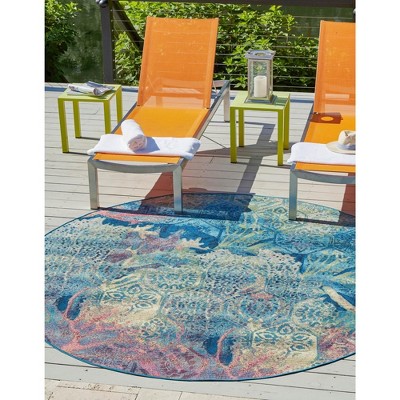 A: The rug is made from 100% polypropylene, ensuring durability and resistance to outdoor elements.