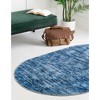 The blue color is interestingly woven into this rug with shades of blues.........very nice low pile rug