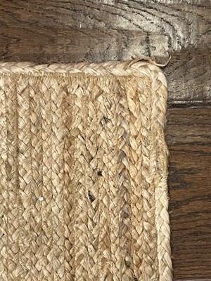 Bought two sizes of this jute rug. Smaller one was pristine and exactly what i wanted. The larger one was stained in several places with plenty of loose threads. It also heavy and hard to handle.