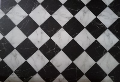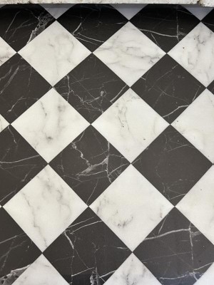[This review was collected as part of a promotion.] I put this mat in front of my kitchen sink and it has been great. It is so thick and cushy to stand on even for long periods of time. I like that the material is waterproof so I can simply wipe it off when it's dirty or dry it off when I'm done washing dishes. The checkered look is classic and the added marble look is kind of fun. I really love having this mat in my kitchen.