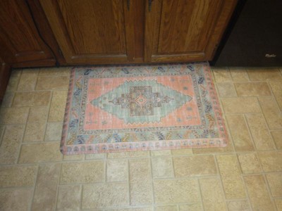 [This review was collected as part of a promotion.] This rug is squishy and soft! I use it for the floor under my kitchen sink since that is where I stand most of the time in the kitchen. The pattern is more western style and the colors are NOT vibrant. They are muted/matte. I like that is easy to clean as well.