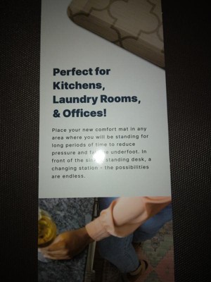 • VERSATILE: With a plush cushion and updated style, this comfort mat allows you infinite design applications in multiple spaces from the kitchen to the laundry room, mudroom, nursery, garage and even your at home office!