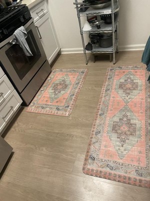 [This review was collected as part of a promotion.] The Unique Loom Comfort Mat Collection - Whitney (Rose Pink/ Black) is comfy to stand on and the look is true to from from the picture and looks good in a kitchen or bathroom. It's comfortable to stand on and easy to clean. The design is a nice add to the home.