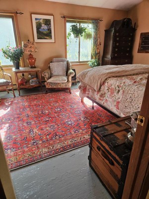 After years of having a wall to wall carpet in our bedroom, I enthusiastically pulled it up, sanded and painted the floor. We purchased a "Pet Proof" area 8×12 carpet which was easy to do on the rugs.com websight.Honestly, its even nicer than we hoped for. Our bedroom is now fresh and gorgeous!
