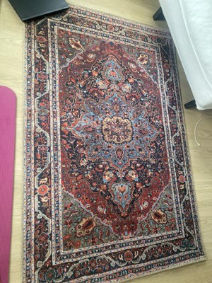 Rug was disappointing it looks more like an outdoor mat than a rug. The color is beautiful I just wished it was a proper rug not a printed mat. The color as flaked off is several places exposing white.