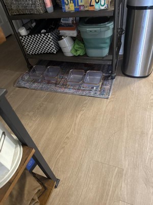 Perfect little kitchen rug. I should have gotten the non-slip rug pad, because this slips & slides all over the marble tile floor. Colors are nicely muted. Design unusual.