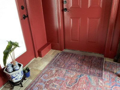 Cute rug for right inside our sliding door. I wanted a darker color so stains from GA clay would not be so obvious. It suits that purpose well. Definitely needs a non-slip pad under it. I’m not sure how well it will hold up when washed since I haven’t had to do that yet.