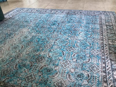 • A: The rug combines traditional floral and geometric designs with contemporary colors, fitting casual and vintage decorating styles.
