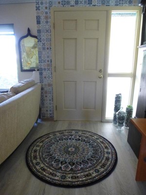This rug is small enough for the space without taking over my wood floors, which my husband didn't want me to cover up, and the medallion look is perfect for my Zen-Den space, look wise. I've gotten so many compliments on it so far. I love it!