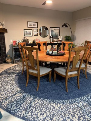 I have this four foot round version of the main rug in the kitchen and it is perfect under my small round table and chairs!