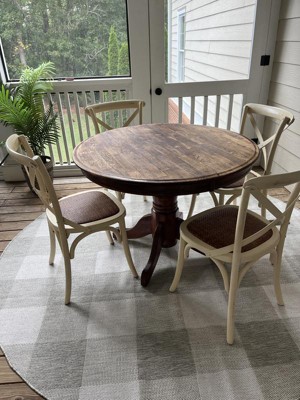A: Clean the rug by spraying with a soap and water mixture, then rinse with a garden hose.