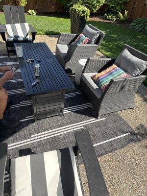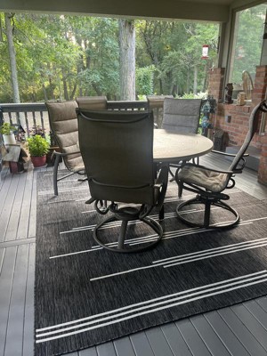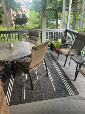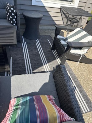 A: Yes, its flat-weave pile allows for seamless placement underneath furniture both indoors and outdoors.