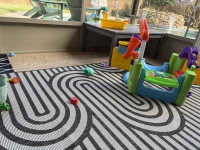 A: Yes, its flat-weave pile allows for seamless placement underneath furniture both indoors and outdoors.
