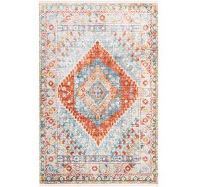 A: The rug is made from 100% polypropylene, ensuring durability and stain resistance.