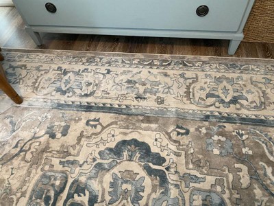 A: The rug has a cotton backing, providing stability and support.