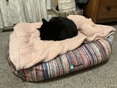 Right out of the box this pet bed (both my dog and cat love it) was a huge hit! The bed is soft, provides great support and has beautiful colors. I highly recommend!