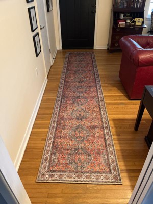 I was hoping this rug would look a little more vintage, but I still like it. The pattern is more "clear cut" than I expected, if that makes sense - sharp lines look less vintage to me. The colors are bold. But I still like how it looks in our entryway and will be keeping it!