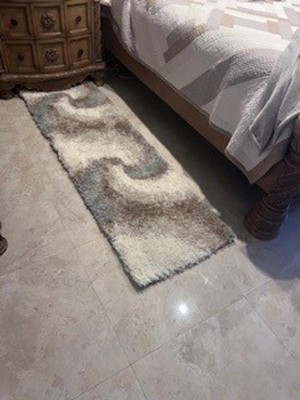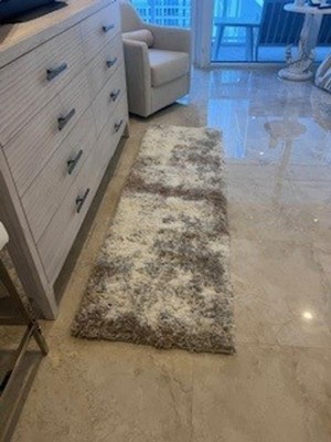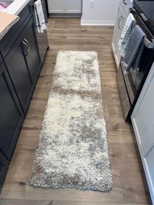 I just renovated my bathroom and I found the perfect runner to add some sophistication and drama to the area. The rug is a very soft luxurious full shag with tones of grays, browns and cream in a random flowing pattern. I’m very happy with my purchase.