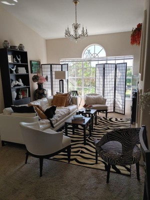 I'd been looking for a zebra print rug for almost a year, they were all scratchy, or super cheap looking. This one is soft, can definitely tell it's synthetic, but I put thicker rug pad under it & it's perfect
