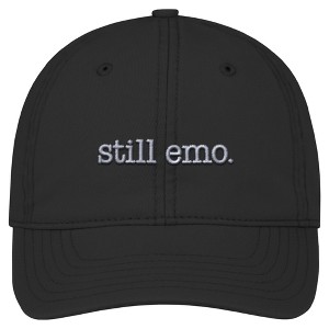 - Strut your stuff with this stylish new hat that is perfect for every occasion! Featuring the phrase: "Still Emo" embroidered on the front.