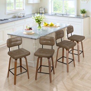 UNISOAR 26" Counter Height Swivel Bar Stools,PU Leather & Bentwood Back Bar Stools for Kitchen