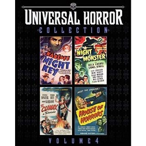 Get ready for more thrills and chills! Volume 4 of the Universal Horror Collection includes four tales of terror from the archives of Universal Pictures, the true home of classic horror. This collection includes such horror stars as Boris Karloff, Bela Lugosi, Lionel Atwill, and Rondo Hatton. Boris Karloff ignites the screen as an inventor who is kidnapped by a gang of burglars and forced to help them commit robberies in Night Key. Bela Lugosi stars in a creepy tale of strange characters, secret passages and a murderer who masters the art of "mind over matter" in Night Monster. In The Climax, Karloff is terrifying as a mad doctor whose insane jealousy over a beautiful opera singer may drive him to murder. A giant of a man is used as an instrument of evil by a mad sculptor in House of Horrors. Aspect Ratio: 1.33:1