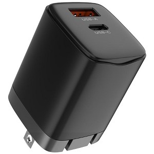 Universal Power Brick, Nakedcellphone Dual Port USB 20W Travel Wall Charger (USB-C / USB-A) Fast Charge for Cell Phone, iPhone, Z Flip, Z Fold, RAZR