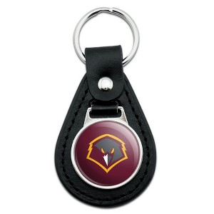 - QUALITY MATERIAL: Our durable round keychain is crafted from leather with a glossy resin-topped emblem featured design shown on one side. Approximately 1.5" (3.8cm) x 2.5" (6.4cm) in overall size, emblem is 1" (2.5cm)..