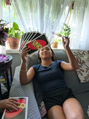 The giant version of Uno has become a beloved addition to family game nights, offering a fun twist on the classic game. Guests appreciate the oversized cards, which are easy to see and hold, making it enjoyable for players of all ages. The inclusion of customizable wild cards adds creativity to the gameplay. However, some guests find shuffling the large cards challenging, which can affect the flow of the game. Overall, it's a delightful way to bring laughter and excitement to gatherings.