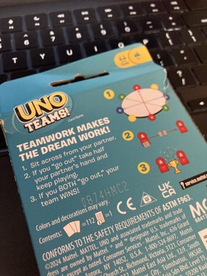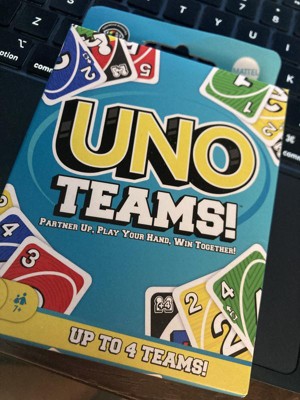 [This review was collected as part of a promotion.] UNO teams is a great card game to take on the go. We took it on vacation and played in the airport and at the hotel. It’s so fun and lasts longer than standard ink because you can’t win till your team wins. I love how portable it is and how it’s engaging for all ages.