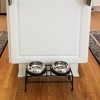 - What's in the Box: (2) Unspill-a-Bowl® Stainless Steel Dog Bowls and (1) Wrought Iron Stand