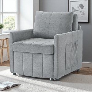 Upholstered Convertible Sleeper Chair, 31.5" Pull-Out Sofa Bed with Adjustable Backrest and Storage