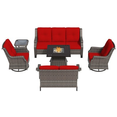 UPTIOT 5-Piece Steel Wicker Patio Conversation