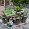 8 pieces outdoor furniture: including a 3-seat sofa, 4 armchairs, 2 ottomans, 1 storage coffee table, the modular unit design makes various rearrangings for patio, garden, backyard, poolside, and balconies