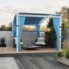 Made of a white metal frame and a water-blue canopy, this awning is the ideal awning for any scene. It has enough space to accommodate a set of outdoor sofas for you to rest and chat with your friends. We have two kinds of curtains for this arbor, one is blue cloth and one is white gauze, you can choose the style you like. We are committed to providing our customers with a free and comfortable outdoor environment.