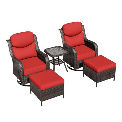 UPTIOT Outdoor Rocking Set with Multi-Functional Ottomans & Tables,Red