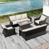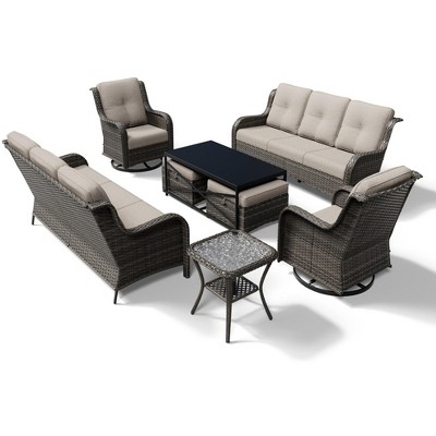 UPTIOT Outdoor Seating Set with Convertible Fire Pit Table,Beige