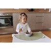 [This review was collected as part of a promotion.] Ok so I love the concept of these. They’re easy to roll up and put in the diaper bag and easy to clean. They’re great to bring to a restaurant so your little one doesn’t eat directly off the table. My ONLY critique (and it’s not the mat itself) is that my 13 month old can easily pick it up and toss it off the table. It’s probably better suited for older toddlers, but like I said I like the concept and we’ll keep trying!