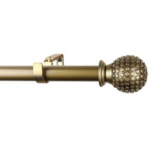 The adjustable curtain rod measures 1" diameter and comes with polyresin finials. The finials measure 2 1/4" long and 2 1/4" in diameter. The rod extends from 28" to 48".