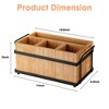 This bamboo utensil caddy features a smart 4-compartment layout tailored for gatherings: one extra-long slot designed to hold napkins (folded or rolled) and three separate sections perfectly sized for forks, spoons, and knives. The segmented design eliminates