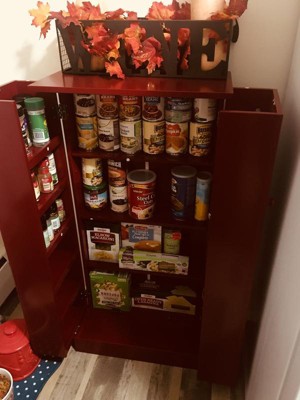 Buylateral Utility Pantry Red: Transitional Style, MDF Construction, 3 Adjustable Shelves, 10 Door Compartments