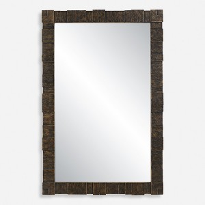 Introduce bold sophistication to your space with the Bustelo Dark Bronze Mirror, a masterful blend of modern geometry and aged elegance. This mirror features a uniquely layered metal frame that creates a dynamic dimensional effect, finished in a heavily distressed dark bronze with antique gold undertones for added visual warmth.