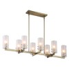 The Mistie 8 Light Linear Chandelier combines opulence with refined craftsmanship. Featuring eight handmade glass panels of etched translucent seeded glass, each shade creates a soft, elegant glow. The rectangular bar frame, finished in antique brass, is both robust and stylish, suspended by two adjustable-length stems for versatile installation. Perfect for dining areas, kitchens, or modern living spaces, this chandelier delivers a statement of luxury and sophistication.