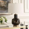 Smokey charcoal glass base offers moody elegance with a translucent finish