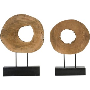 Accent a room with this two-piece mango wood log slice set mounted on matte black finish metal stands. Rich, warm tones and exotic patterns lie within this one-of-a-kind natural room decor set. From Uttermost.