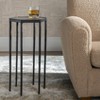Feast your eyes on a dynamic design as this modern hexagonal accent table delivers a dramatic look. From the Aviary collection by Uttermost, this table taps a geometric design silhouette with a hexagonal top and long, slender, tapered legs made of satin black finish chiseled iron. A honed black marble top features natural white veining, adding a textural appearance.
